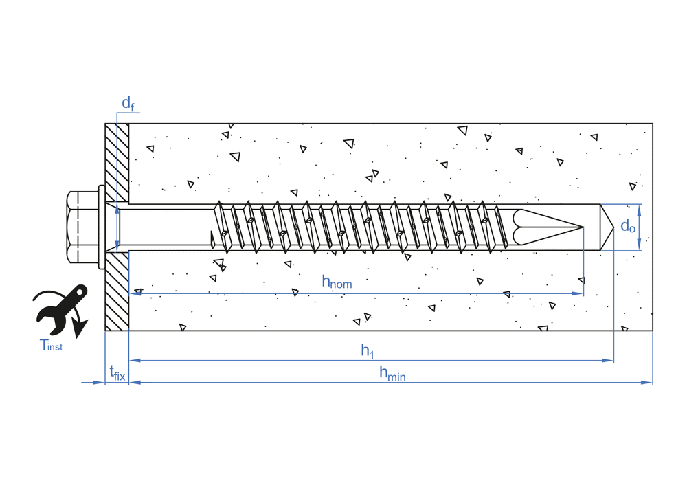 • hnom - 最小锚固深度40