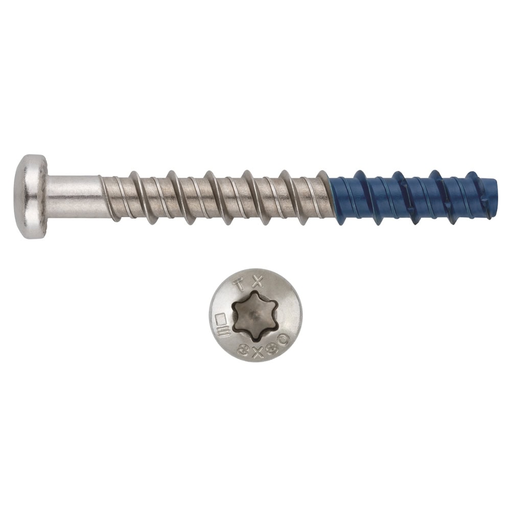 Bimetal concrete screw anchor (Stainless steel A4 body and hardened carbon steel point). Opt.1 ETA Assessed. Pan head