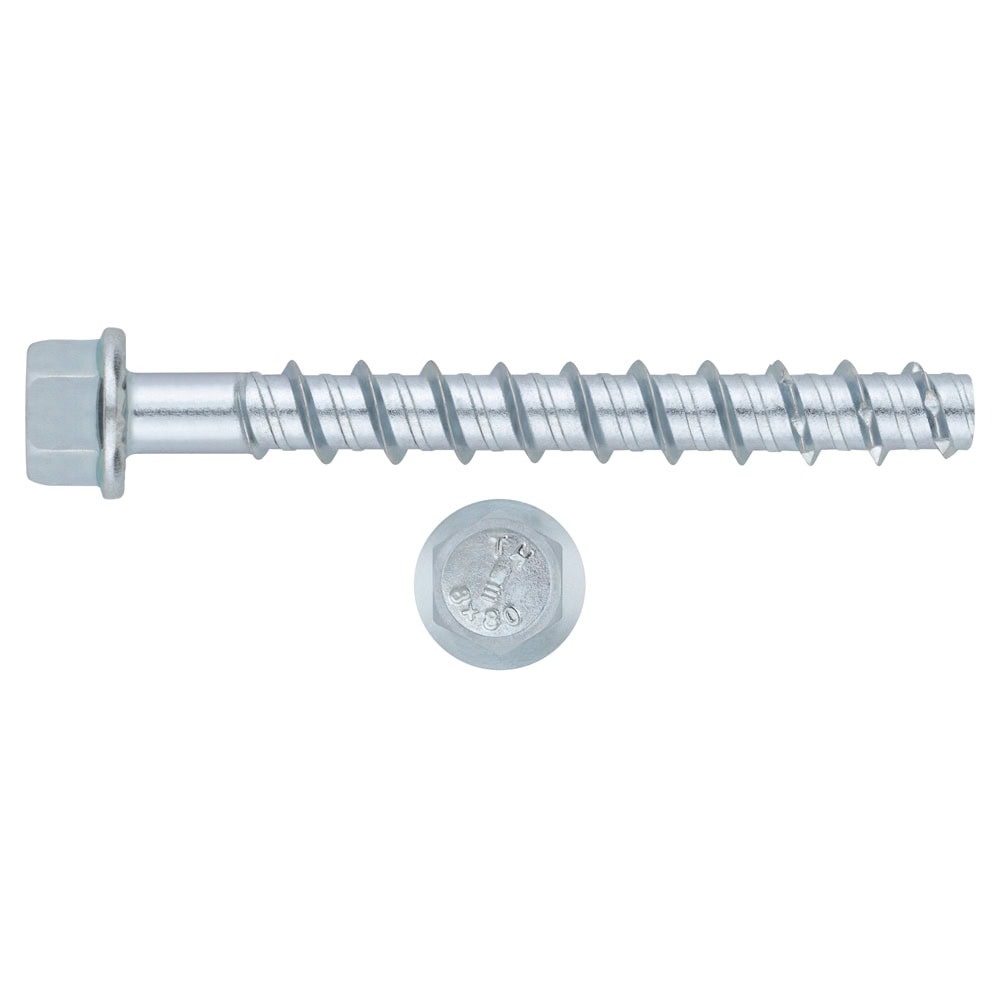 Concrete screw anchor with zinc plated coating. Opt.1 ETA Assessed. Hexagon head