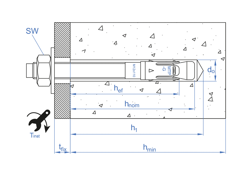 • hnom - Min. anchor depth60