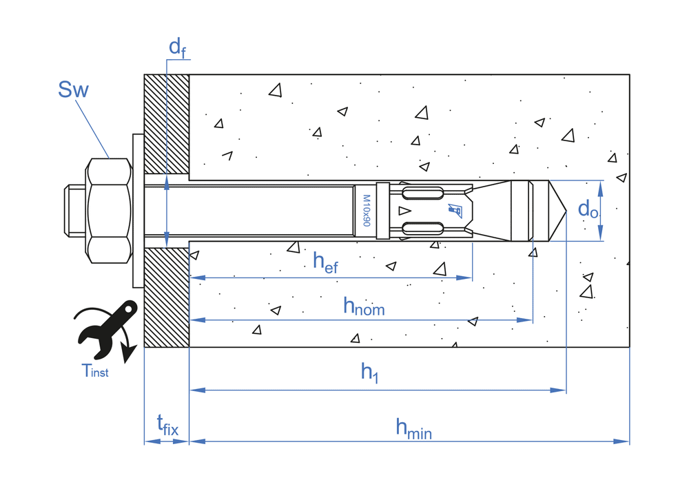 Products / Fixing / Through bolt anchor for heavy loads in uncracked concrete / Opt.7 ETA Assessed. A2 Stainless steel shaft. A2 Stainless steel clip